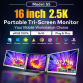 • [Stunning 2.5K QHD Display] - Experience crystal-clear visuals with dual laptop extender 15.6" Full HD IPS screens featuring 2560×1600 resolution, 300 nits brightness, and wide viewing angle. Enjoy much sharper and more detailed visuals, eye-friendly technology including low blue light, anti-glare coating and flicker-free viewing—perfect for long hours of work, gaming, or streaming. Easily adjust brightness and volume using the built-in side controls for a customized viewing experience