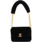 CHANEL Pre-Loved CC Bar Chain Handle Flap Bag Quilted Shearling Small, Black