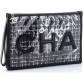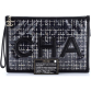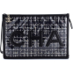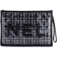 CHANEL Pre-Loved Logo Wristlet Clutch PVC Over Quilted Tweed Large, Black