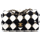 CHANEL Pre-Loved Metiers d'Art Checkerboard Single Flap Bag Embellished Satin Medium, White