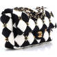 Metiers d'Art Checkerboard Single Flap Bag Embellished Satin Medium. These are professional pictures of the actual item offered by Rebag.